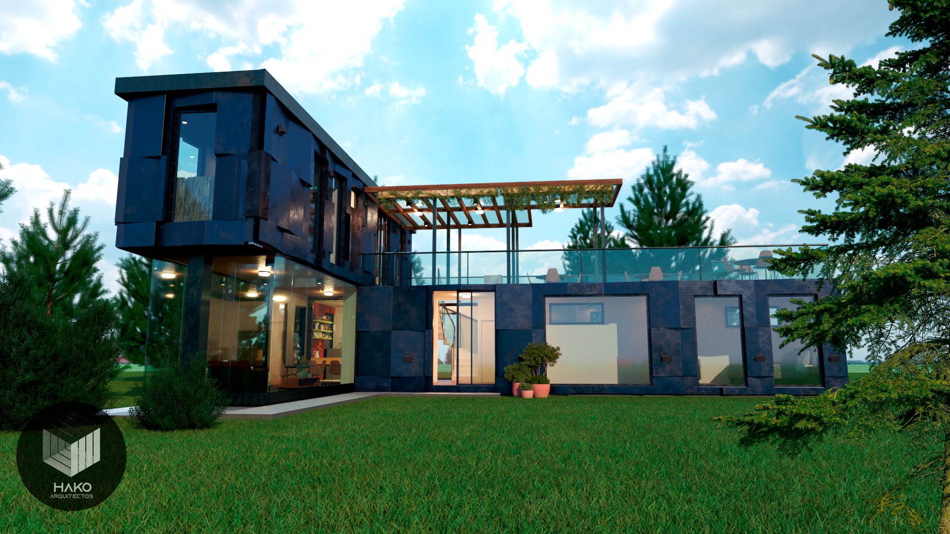 En hako desarrollamos diferentes prototipos de vivienda con containers donde el diseño modular permite generar variaciones de diseño adaptables según las necesidades del cliente, climáticas y del terreno. Para este diseño de casa con containers se utilizaron dos modulosen L aprovechando el espacio generado por su superposición generando 3 habitaciones, Sala, cocina, amplios corredores y terraza. ¿Cuál es el costo de hacer arquitectura con contenedores? Contáctanos y responderemos esta y más dudas. Ver Video.