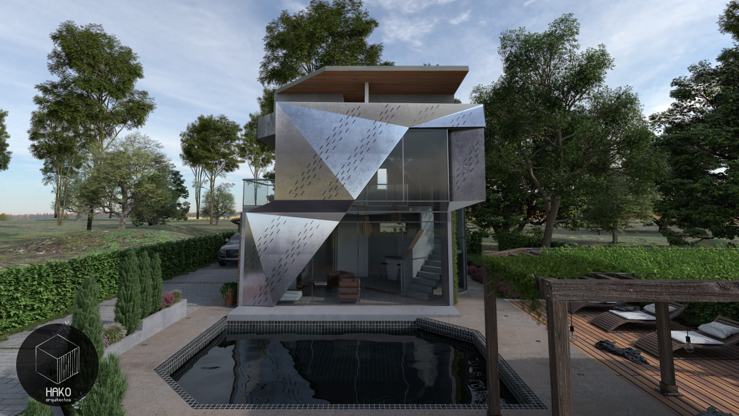 Render de vivienda contemporánea en Bogotá - Casa Fractal Diseño de edificio multifamiliar en Bogotá – Hako Arquitectos Diseño de casas modernas con containers Arquitectos de casas personalizadas en Bogotá-Hakoarquitectos fachadas de casas modernas en Bogotá- Hako arquitectos